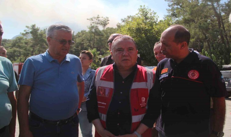Yanan alanın 180 hektarı geçtiğini dile getiren Böcek, "Bütün amacımız hedefimiz yangının kısa sürede kontrol altına alınmasıdır. Ciğerlerimiz ormanımız yanmasın. Destek olan herkese teşekkürler. Poyraz nedeniyle yangın sarp kayalık alanda ilerliyor ve kontrol altına alınamadı. Havadan yoğun söndürme çalışması var. Ankara, Konya Isparta dahil tüm belediyeler ekibini gönderdi. Antalya’mıza geçmiş olsun” dedi.