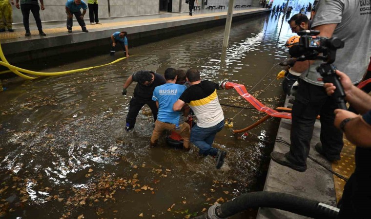 Bursa’da etkili olan sağanak yağışın hayatı olumsuz etkilemesi üzerine şehir dışındaki programlarını iptal ederek hızlıca kente dönen Bursa Büyükşehir Belediye Başkanı Mustafa Bozbey, Odunluk İstasyonu’ndaki su tahliye çalışmalarını yerinde inceledi.