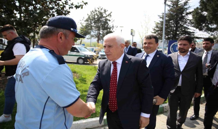 Bursa Büyükşehir Belediye Başkanı Mustafa Bozbey, Ramazan Bayramı’nda da görevini sürdüren Büyükşehir Belediyesi çalışanlarını ziyaret etti. Görev başındaki personelden bilgi alan Başkan Bozbey telsizle anons geçerek sahada mesaisini sürdüren çalışanların bayramını tebrik etti.