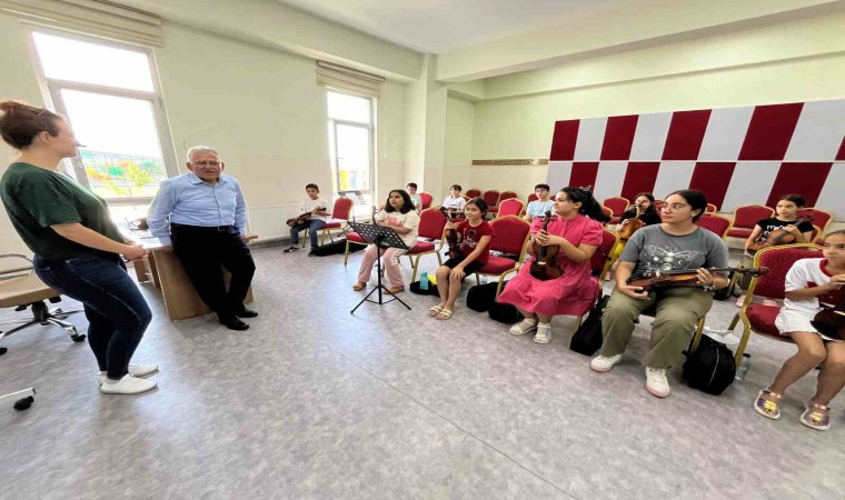 Sınıf sınıf gezen Başkan Büyükkılıç, enstrüman öğrenen gençleri izleyip, onlara eşlik etmeyi de ihmal etmedi.