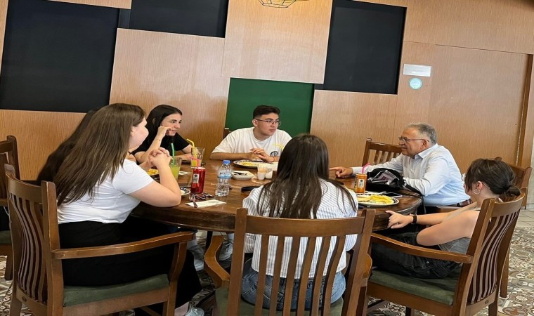 Başkan Büyükkılıç, 2023-2024 Eğitim Öğretim Yılı’nı geride bırakarak, karne alan öğrencilerle Glütensiz Kafe’de ve Emirgan Kafe’de bir araya geldi. Önce Büyükşehir’in sağlık ve insan odaklı sosyal sorumluluk projesi olan Glütensiz Kafe’yi ziyaret eden Başkan Büyükkılıç, burada karne alan öğrencilerle sohbet etti. Başkan Büyükkılıç, daha sonra da Büyükşehir Belediyesi Emirgan Kafe’ye giderek, öğrencilerle buluştu. Burada öğrencilerle sohbet eden Başkan Büyükkılıç, karnelerini alan tüm öğrencilere keyifli bir yaz tatili geçirmesini temenni etti. Başkan Büyükkılıç, tüm yıl boyunca çalışan ve yorulan öğrencilerin yaz tatilini hak ettiğini ifade ederek, “Büyükşehir Belediyesi olarak, yaz tatillerinde tesislerimizle de sizlerin yanında olacağız. Sizler bizim geleceğimizsiniz. Eğitimli, donanımlı, hayatı seven ve önemseyen, sorumluluk sahibi gençler görmek istiyoruz. Bizler, sizin bu anlamda tam manada konforunuzu sağlamak için buradayız. Yoruldunuz. Şimdi tatil vakti. Büyükşehir Belediyesi, Spor A.Ş., Büyükşehir Belediyesi KAYMEK, Büyükşehir Belediyesi Sanat Akademisi Yaz Kursları ile yaz boyunca sizlere hizmet vereceğiz. Tadını çıkarın” diye konuştu.
