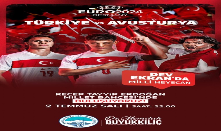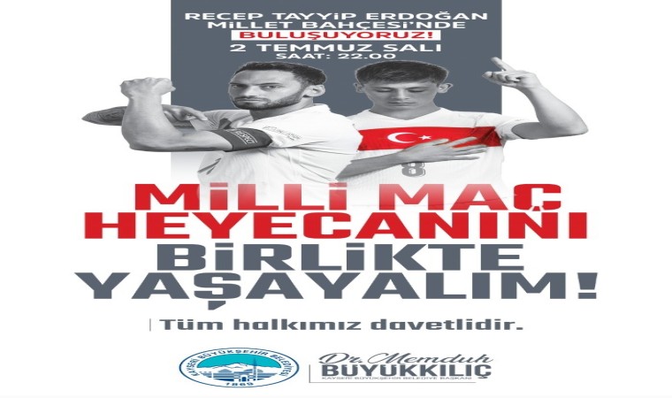 Büyükkılıç, tüm Kayserilileri milli gurur ve heyecanı yaşamak için Millet Bahçesi’ne davet ederek, “2 Temmuz Salı günü saat 22.00’de oynanacak milli maçımızı Millet Bahçemizde, Büyükşehir Belediyemiz tarafından hazırlanacak dev ekranda izlemeye ve tek yürek olmaya davet ediyoruz” diye konuştu.