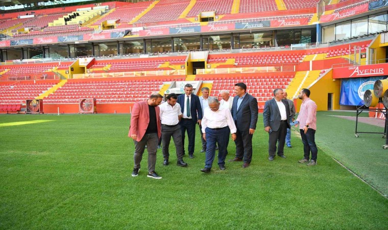 Büyükşehir Belediye Başkanı Dr. Memduh Büyükkılıç, stadyumda yapılan çalışmaları yerinde inceleyerek, yakından takip etti.