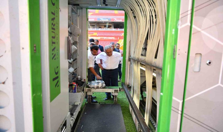Çimlerin hibrit sistem ile buluşturulduğunu ifade eden Başkan Büyükkılıç, “Artık teknik olarak ömrünü doldurmuş olan zeminimizin iyileştirme çalışmalarını gözden geçirerek, sahası tamamen yenilendi, çimi serildi, aynı zamanda çimi hibrit sistemi ile buluşturan yaklaşım ile teknolojinin en son uygulamaları hayata geçirilmiş oldu” diye konuştu.