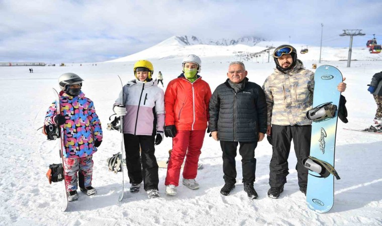 Büyükşehir Belediye Başkanı Dr. Memduh Büyükkılıç, hem yerli hem de yabancı misafirlerle bol bol hatıra fotoğraf çektirerek, Erciyes Kayak Merkezi’nin büyüleyici atmosferini bir kez daha misafirlerle birlikte yaşadı.