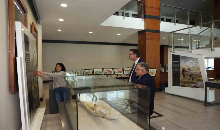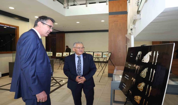 Kayseri Bölge Adliye Mahkemesi Başsavcısı Burhan Bölükbaşı, Büyükşehir Belediye Başkanı Dr. Memduh Büyükkılıç’a nezaket ziyaretinde bulundu. Başkan Büyükkılıç, Başsavcı Bölükbaşı’ya, Büyükşehir Belediyesi Başkanlık girişinde, dünya jeoloji tarihine ışık tutan 7,5 milyon yıllık fosillerin ayaklandırma çalışmalarının yer aldığı sergiyi gezdirdi. Bölükbaşı, 7,5 milyon yıllık fosillerin sergisini ilgiyle inceleyerek, çalışmalar hakkında bilgiler aldı.