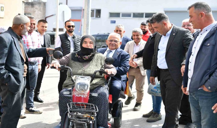 Mahalle sakinlerinden Fadime teyzenin de elektrikli aracı ile kendisini gezdirmek istemesi talebini de kırmayan ve araca binerek, keyifli bir gezi yapan Büyükkılıç, gezi esnasında Fadime teyze ile sıcak ve samimi sohbet de gerçekleştirdi.