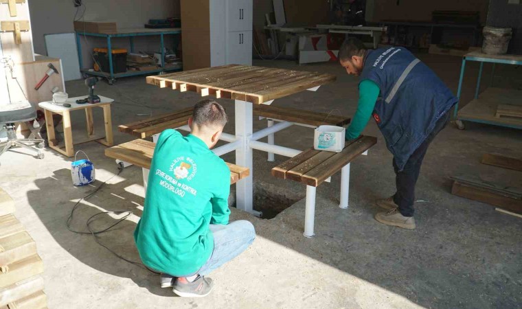 Haliliye Belediyesi’nin şehre kazandırdığı kamelya, bank ve piknik masalarının üretimi hızla sürüyor. Belediye Başkanı Mehmet Canpolat’ın “Üreten Belediye” anlayışıyla çalışmalarını yürüten Çevre Koruma ve Kontrol Müdürlüğü, bünyesinde kurduğu Ahşap ve Metal-İş Atölyesinde çalışmalarına devam ediyor. Belediye bünyesinde kurulan Ahşap ve Metal-İş Atölyesi ile ustalar tarafından çeşitli aşamalardan geçen kamelya, bank ve piknik masaları, kullanma hazır hale getirilerek, parklara kazandırılıyor.
