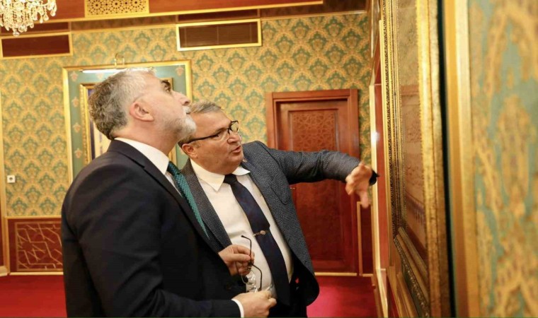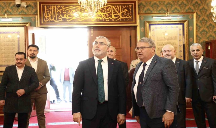 Manisa’da Kadın istihdamının artırılması için başlatılan İş Pozitif Fuarı’na katılan ve ardından Manisa’nın iş insanlarıyla bir toplantı yapan Çalışma ve Sosyal Güvenlik Bakanı Vedat Işıkhan, daha sonra Yunusemre Belediye Başkanı Dr. Mehmet Çerçi’yi belediyede ziyaret etti. Ziyaret öncesinde Yunusemre Belediyesi’nin ilçeye kazandırdığı ve Cumhurbaşkanı Recep Tayyip Erdoğan’ın açılışını gerçekleştirdiği Saruhanbey Camii’nde öğle namazını kılan Bakan Işıkhan, namazın ardından Yunusemre Belediye Başkanı Dr. Mehmet Çerçi ile birlikte çocuklara top ve oyuncak dağıttı. Yunusemre Belediye Başkanı Çerçi ile birlikte ilçeye kazandırılan vizyon projelerden biri olan 100. Yıl Meydanı’nda incelemede bulunan Bakan Işıkhan, ardından Belediye Başkanı Dr. Mehmet Çerçi’yi makamında ziyaret etti. Bakan Işıkhan ziyarette ilk olarak belediyenin anı defterini imzaladı. Ziyarette Bakan Işıkhan’a Manisa Valisi Enver Ünlü, AK Parti Manisa Milletvekili Mücahit Arınç, Ak Parti MKYK Üyesi Ayşe Nevin Sert, AK Parti Manisa İl Başkanı Salih Hızlı, AK Parti Yunusemre İlçe Başkanı İlkcan Durmaz, Cumhur İttifakı Şehzadeler Belediye Başkan Adayı Yavuz Kurt ve partililer eşlik etti. Bakan Işıkhan’ı hem Yunusemre ilçesinde hem de belediyede ağırlamaktan dolayı büyük memnuniyet duyduğunu ifade eden Belediye Başkanı Dr. Mehmet Çerçi, belediyenin 10 yıllık süre içerisinde ilçede hayata geçirdiği projeler hakkında brifing verdi. Brifingin ardından Başkan Çerçi Bakan Işıkhan’a hediye takdiminde bulundu.