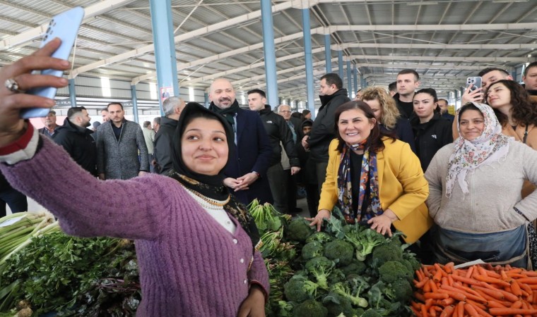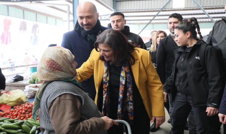 Aydın Büyükşehir Belediye Başkanı Özlem Çerçioğlu, Söke Belediye Başkanı Mustafa İberya Arıkan ile birlikte Söke Bağarası Salı Pazarı’nda vatandaşlarla buluştu. Üreticiler ve vatandaşlar Çerçioğlu’nu yoğun ilgiyle karşıladı.