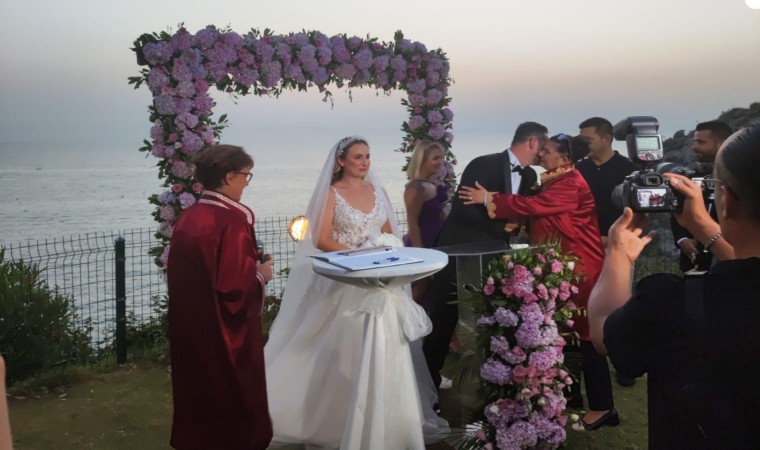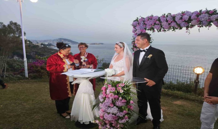 Aydın Büyükşehir Belediye Başkanı Özlem Çerçioğlu’nun yeğeni Halil Kahyaoğulları, Kuşadası’nda gerçekleştirilen törenle dünya evine girerken, genç çiftin nikahını Başkan Özlem Çerçioğlu kıydı.