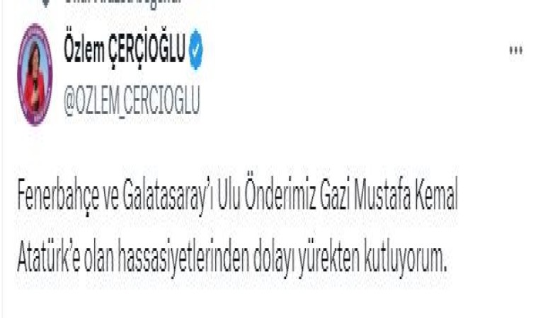 Başkan Çerçioğlu, yaptığı paylaşımda "Fenerbahçe ve Galatasaray’ı Ulu Önderimiz Gazi Mustafa Kemal Atatürk’e olan hassasiyetlerinden dolayı yürekten kutluyorum" ifadelerine yer verdi.