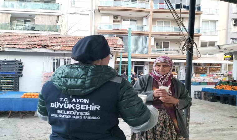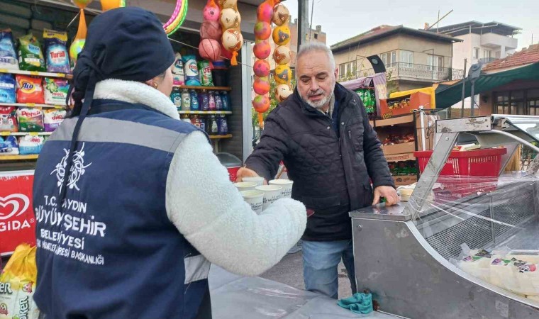 Aydın Büyükşehir Belediyesi, sosyal belediyecilik uygulamalarına hız kesmeden devam ederken, pazarcı esnafı ve vatandaşlara sıcak çorba ikramında bulunuyor.