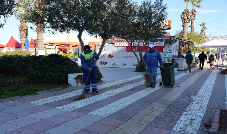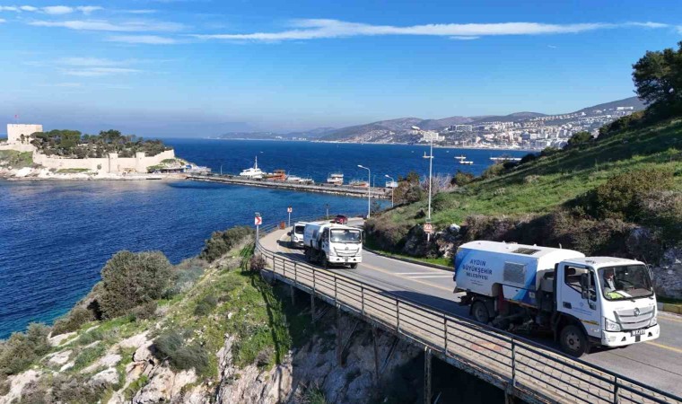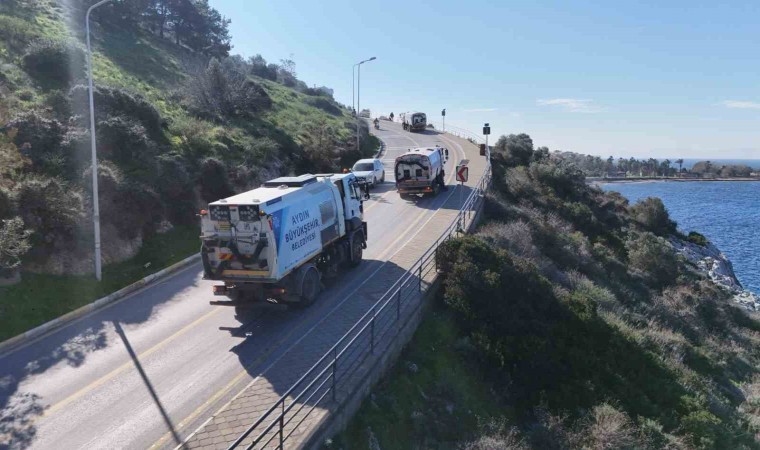 Aydın Büyükşehir Belediyesi Kuşadası’nda 7 araç ve 45 personelle çevre bakım çalışması gerçekleştirdi.