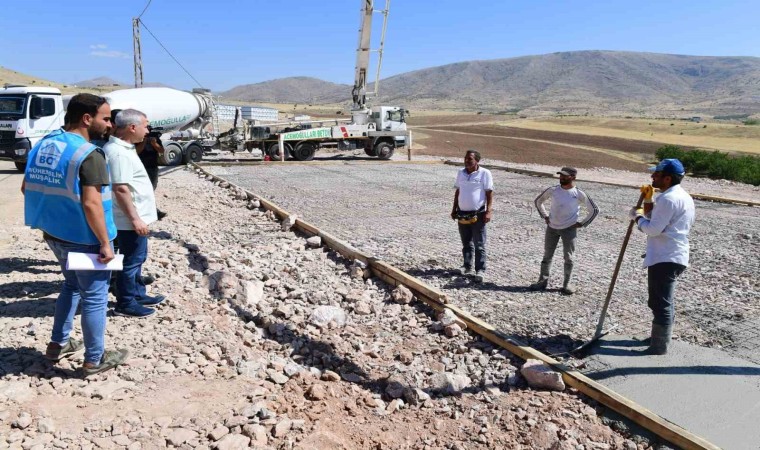 Yeşilyurt Belediye Başkanı Mehmet Çınar konuşmasından sonra inşaat alanını gezip çalışanlara ‘kolaylıklar’ diledi.