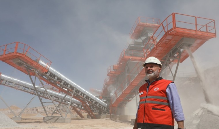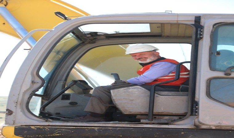 Konuşmanın ardından Başkan Çolakbayrakdar, büyük bir ustalıkla kepçe kullanıp, agrega üretimi için taşları kırıcı ile kırdı.
