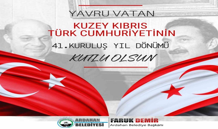 Ardahan Belediye Başkanı Faruk Demir, Kuzey Kıbrıs Türk Cumhuriyeti (KKTC)’nin 41. kuruluş yıldönümü dolayısıyla bir kutlama mesajı yayınladı.
