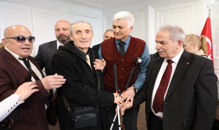 SAMSUN (İHA) – İlkadım Belediye Başkanı Necattin Demirtaş, 40 adet beyaz bastonu Altı Nokta Körler Derneğine hediye etti.