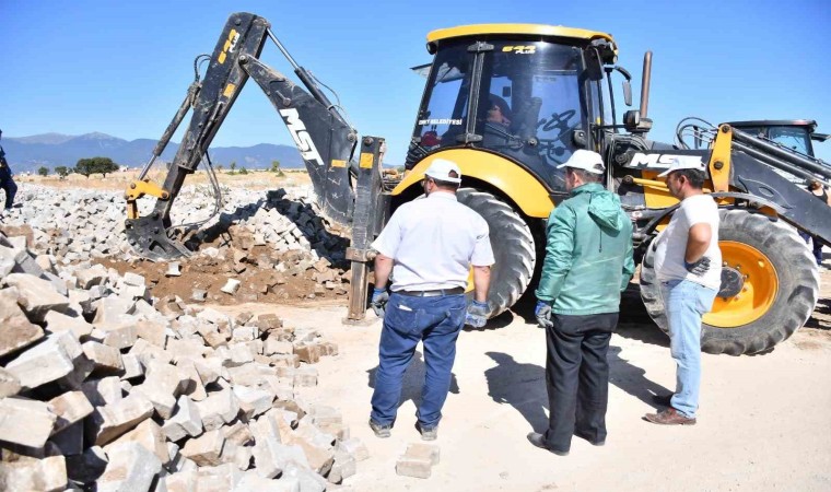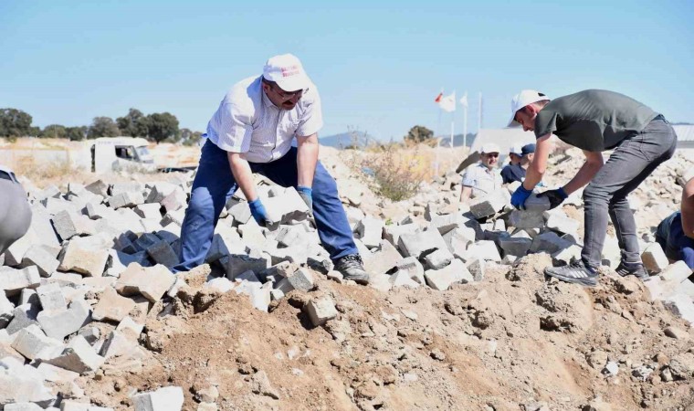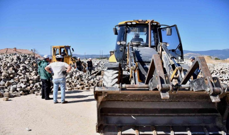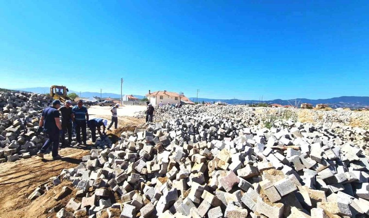 İlçede alt yapı çalışmaları esnasında sökümü yapılan alanlardan toplanan parke taşları sanayi mevkiinde belediyeye ait alana boşaltılıyor. Burada parke taşları kum ve molozlardan temizlenerek, çalışma tamamlanan alanlarda kullanılıyor.