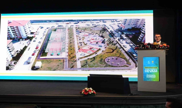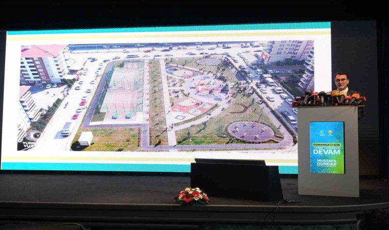 Osmangazi Belediye Başkanı Mustafa Dündar, yeni dönemde 11 kentsel dönüşüme imza atacaklarını, İnkaya’da 500 dönümlük yeni millet bahçesi ve Osmangazi Meydanı’nın 2.etabına imza atacaklarını belirterek, "Tarihi dönüşümü Kayhan ve Hisar bölgesinin tamamına yayacağız. Yeni dönemde dirençli şehirle çevre ve şehircilik standartlarını yükselteceğiz. Yeni bulvarlar ve yeni yollar yapacağız. Afet yönetim merkezini inşa edeceğiz. Vatandaşımıza daha fazla dokunacağız" dedi.