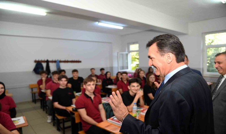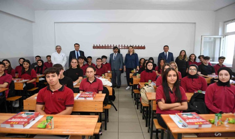Osmangazi İlçe Milliği Eğitim Müdürü Gürhan Çokgezer ile birlikte sınıfları gezen Başkan Dündar, sohbet ettiği öğrencilere üniversiteye hazırlık yardım kitap seti hediye etti.