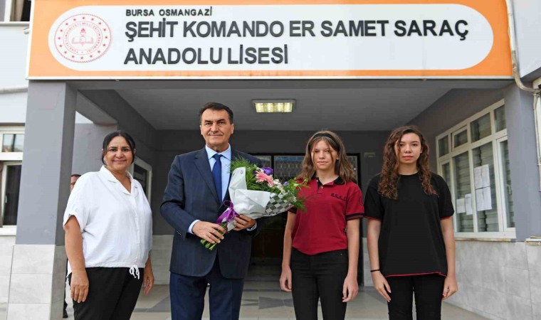 Başkan Dündar, 2023-2024 eğitim öğretim yılının ilk gününden itibaren başladığı okul ziyaretlerine yeni haftada da devam ediyor. Soğanlı Mahallesi’ndeki Şehit Samet Saraç Anadolu Lisesi’nde öğrencilerle bir araya gelen Dündar, Osmangazi Belediyesi’nin hayatın her alanında olduğu gibi eğitim alanında önemli projelere imza attığını söyledi. Osmangazi’de 254 okulda 187 bin öğrenci, 11 bin öğretmen olduğunu hatırlatan Başkan Dündar, “Osmangazi olarak her ferdi, her kurumuyla büyük bir aileyiz. Bu ailenin mutlu ve huzurlu olabilmesi için önemli çalışmalar gerçekleştiriyoruz. Belediye olarak eğitimin kalitesini artırmak adına elimizden gelen gayreti gösteriyoruz. Bütün okullarımıza ihtiyaç ve taleplere göre desteğimizi sürdürüyoruz. Her okulda bir taşımız, bir izimiz vardır. Bizler, öğrencilerimizi ve gençlerimizi görünce geleceğe umutla bakıyoruz. Bu ülkenin geleceği sizlersiniz. Sizlere en iyi şartları sunuyoruz. Size düşen görev, çok çalışmak. Çalışıyorsak, istiyorsak başarırız. Hedeflerimize doğru giderken, üşenmiyoruz, ertelemiyoruz ve vazgeçmiyoruz. Allah hepinize zihin açıklığı versin” dedi.