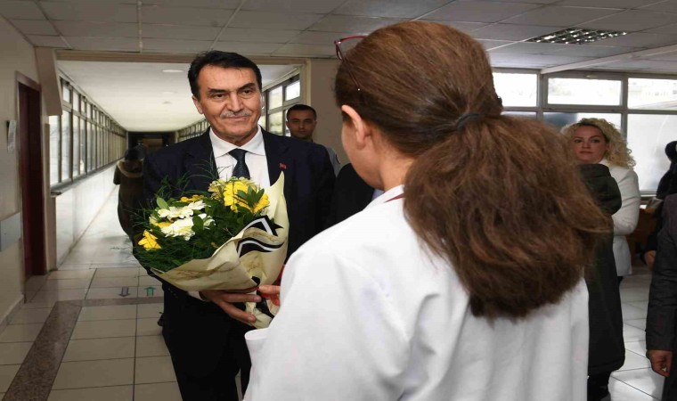 Çekirge Devlet Hastanesi sağlık çalışanları da kendilerini ziyaret edip, çiçek veren Başkan Dündar’a teşekkür etti.