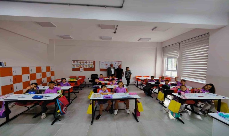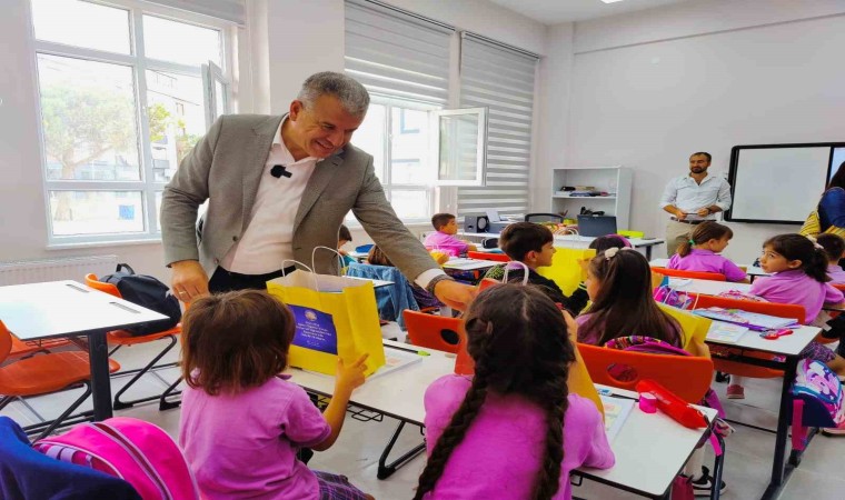 Karabiga Mustafa Kemal İlk ve Ortaokulu’nda yeni eğitim öğretim yılının başlamasıyla birlikte öğrencilere eşlik eden Belediye Başkanı Ahmet Elbi, ders zilinin çalmasıyla birlikte öğrencileri sınıflarında ziyaret etti. Bu ziyaretinde öğrenciler için özel olarak hazırlanan kırtasiye malzemelerini içeren hediye paketlerini öğrencilere dağıttı.