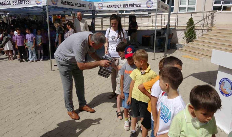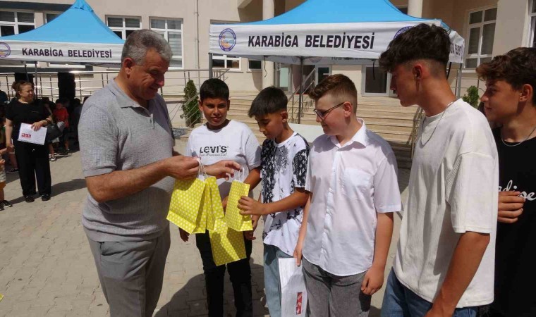 Çanakkale’nin Biga ilçesine bağlı Karabiga Beldesi’nde Belediye Başkanı Ahmet Elbi, 2023-2024 Eğitim-Öğretim yılı sonunda 200 öğrenciye karne hediyesi olarak akıllı saat dağıttı.