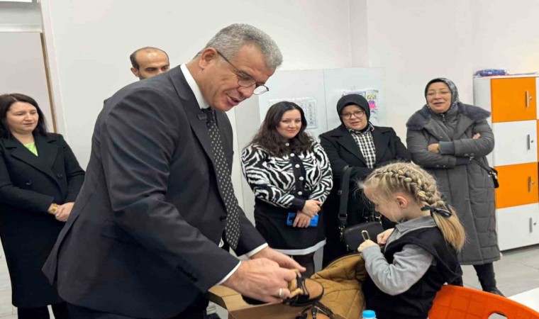 Karabiga Belediye Başkanı Ahmet Elbi, 2024-2025 eğitim öğretim yılı ilk döneminde çocuklara mont ve bot hediye etti.