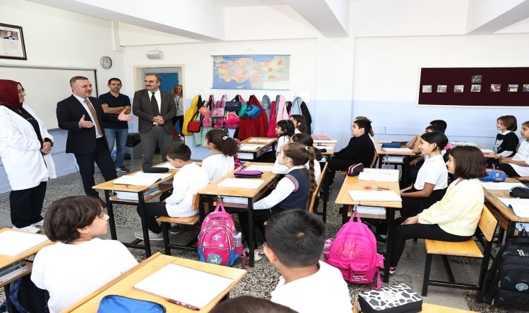 Sınıfları tek tek gezen Başkan Ercan, öğrencilerle eğlenceli vakit geçirirken, ziyaret sonrası hep birlikte hatıra fotoğrafı çektirdi.