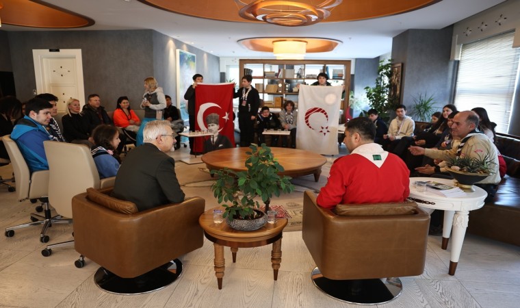Görüşmede renkli görüntüler de oluştu. İzciler, her kamptan bir armanın yer aldığı gömleği Başkan Erdem’e hediye ettiler. Ziyaret sonunda izciler sarılma ritüellerini de gerçekleştirdiler. Birçok gencin Başkan Erdem’e sarıldığı anda sıcak görüntüler oluştu.