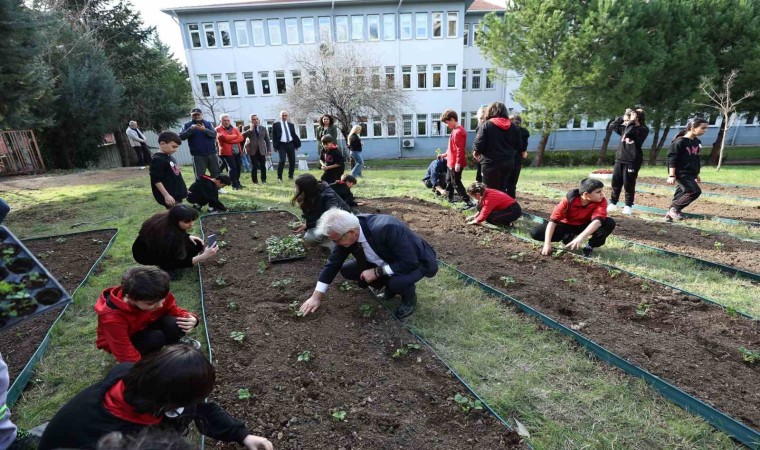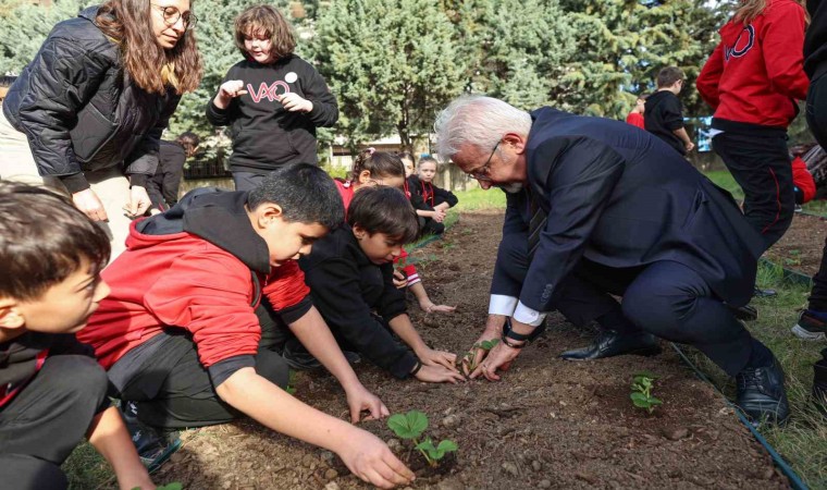 Nilüfer Belediye Başkanı Turgay Erdem, Vahide Aktuğ Ortaokulu öğrencileriyle birlikte okul bahçesinde oluşturulan alana çilek ve marul fidesi dikti. Doğru tarım ve sulama teknikleri hakkında bilinçlenen öğrenciler, ürünlerin yetişme sürecini de gözlemleyecek.