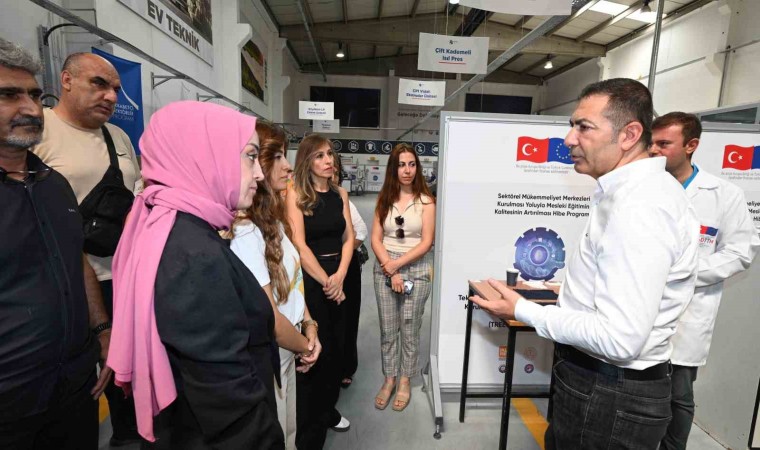 23 farklı şehirdeki 33 ilçeden gelen 46 meslek lisesi öğretmenini, ücretsiz kurs gördükleri DTTM’de Gülay Kaynak Sarıkaya Mesleki ve Teknik Anadolu Lisesi Müdürü Muhammetdin Kırlı, DTO Genel Sekreter Yardımcısı Tekstil Mühendisi Dr. Akay Gündoğan, Proje Koordinatörü Sıdıka Arıkan ve DTO’nun Denizli Avrupa Birliği İş Geliştirme Merkezi (ABİGEM) proje ekibi ile ziyaret eden DTO Yönetim Kurulu Başkanı Uğur Erdoğan, ilgiyle karşılandı. Öğretmenlerin gerek eğitim ve merkezleri gerekse şehirle ilgili görüşlerini dinleyen Başkan Erdoğan, bu görüşmelerden edindikleri geri bildirimlerin kendilerine ve projeleri ile merkezlerindeki çalışmalarına rehber olacağını belirterek teşekkür etti.