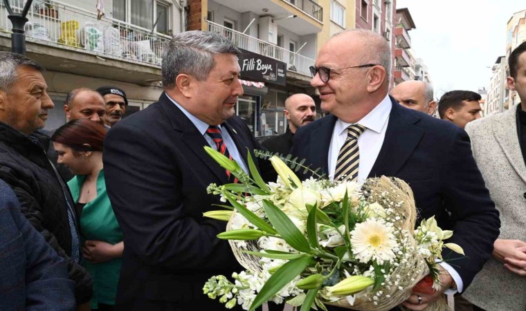 Manisa Büyükşehir Belediye Başkanı Cengiz Ergün, ilçe ziyaret programlarına Saruhanlı ile devam etti. İlçe temaslarına Saruhanlı Ziraat Odası Başkanlığı ziyaretiyle başlayan Başkan Ergün, oda önünde büyük bir ilgiyle karşılandı. Başkan Ergün’ü, üreticiye sağladığı destekler nedeniyle çiftçi dostu başkan ilan eden Ziraat Odası Başkanı Aydoğan Okur, “1973’te kurulan odamıza ilk defa bir belediye başkanı geliyor. Allah sizden razı olsun. Biz sizden çok memnunuz. Sizin sayenizde ekipmanlarımız güçlendi. Sonuna kadar sizin yanınızdayız. Allah razı olsun. Çiftçimize her fırsatta söylüyorum Cengiz Başkan, bizlere destek verdikçe veriyor. Biz de üreticilerimizle birlikte 31 Mart’ta sizlere desteğimizi vereceğiz” dedi.