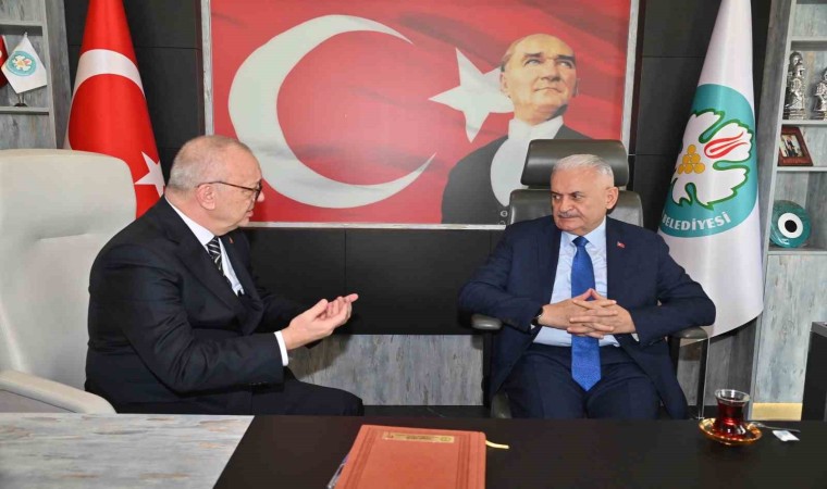 Türkiye Cumhuriyeti’nin 27’nci Başbakanı ve 28. Dönem TBMM Başkanı Binali Yıldırım, Manisa Büyükşehir Belediye Başkanı Cengiz Ergün’e ziyarette bulundu. Binali Yıldırım, Büyükşehir Belediyesi Hizmet Binası önünde, Manisa Büyükşehir Belediye Başkanı Cengiz Ergün, Büyükşehir Belediyesi ve MASKİ Genel Müdürlüğü’nde görevli bürokratlar tarafından karşılandı. Yıldırım’a ziyareti sırasında, Manisa Valisi Enver Ünlü, AK Parti Manisa Milletvekili Murat Baybatur, AK Parti İzmir Milletvekili Mahmut Atilla Kaya, AK Parti Manisa İl Başkan Vekili Cüneyt Kamal eşlik etti. Ziyarette günün anısına Yıldırım’a hediye takdim eden Başkan Ergün, Manisa Büyükşehir Belediyesinin destekleri ile Manisa CBÜ akademisyenleri tarafından hazırlanan ‘Yüzüncü Yılında Milli Mücadele Döneminde Manisa’ isimli 4 ciltlik kitap serisini de armağan etti.