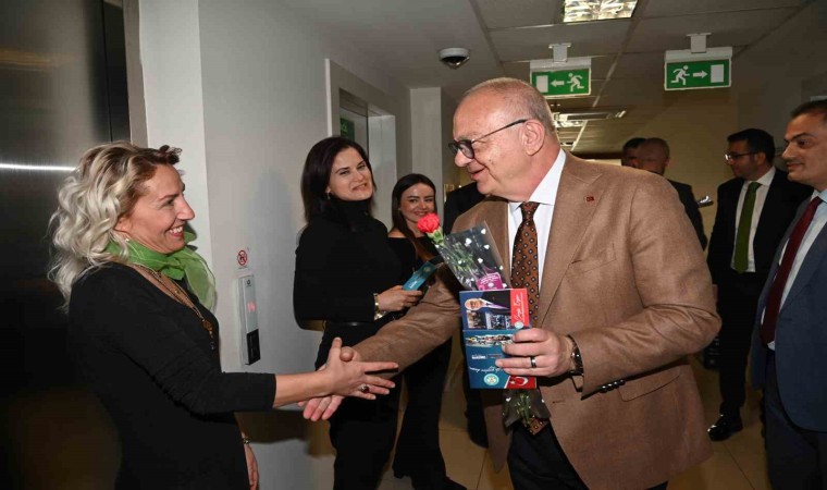 Manisa Büyükşehir Belediye Başkanı Cengiz Ergün, MASKİ Genel Müdürlüğü çalışanları ile bir araya geldi. Kadın çalışanların 8 Mart Dünya Kadınlar Günü’nü kutlayan Başkan Ergün, tüm personele de çalışmalarında kolaylıklar diledi.