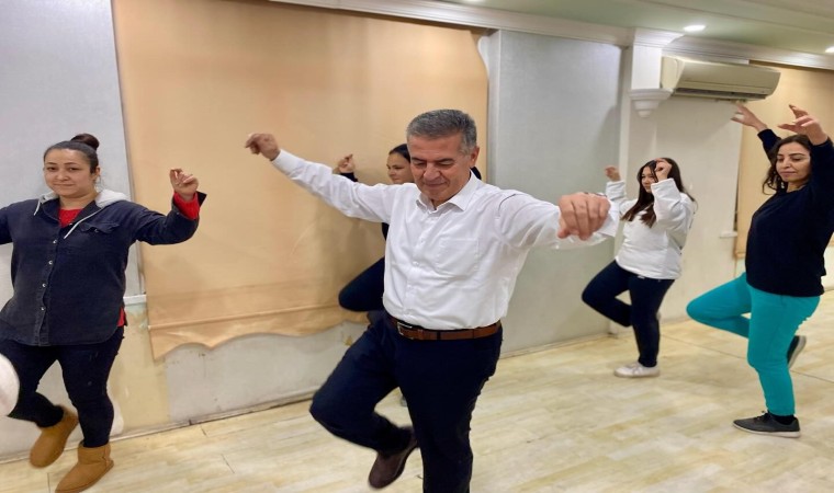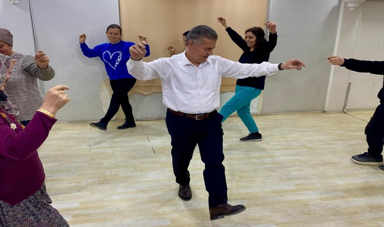Buharkent Belediye Başkanı Mehmet Erol, zeybek çalışmalarını izlemek için gittiği kursta, kursiyerlerin isteğini kırmayarak, onlarla birlikte zeybek oynadı.