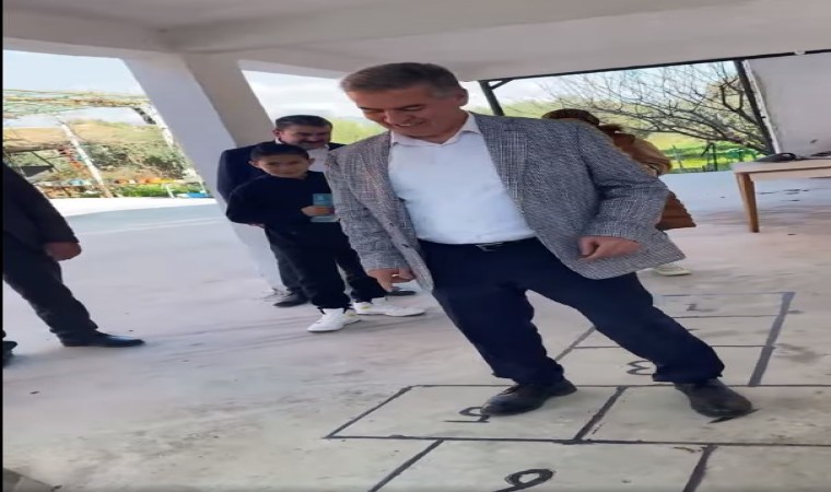 Seçim çalışmaları çerçevesindeki mahalle ziyaretleri sırasında karşılaştığı çocuklarla birlikte seksek oynamaya başlayan Buharkent Belediye Başkanı Mehmet Erol, çocukluğuna geri döndü.
