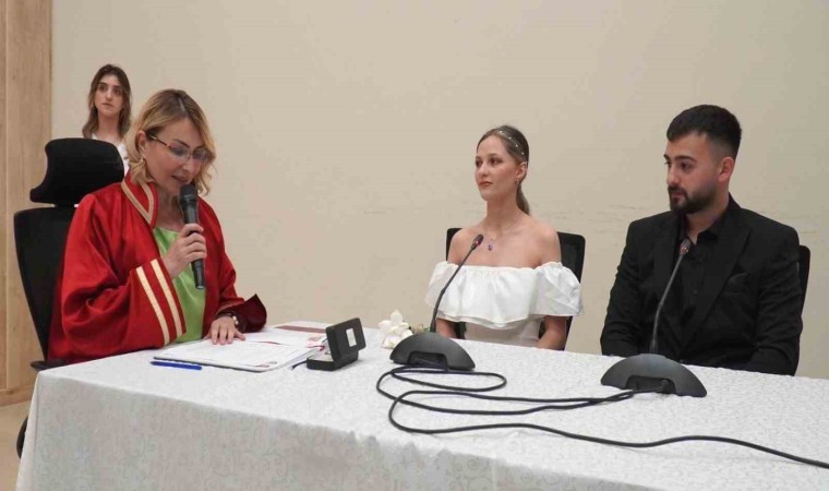 Altınova Belediyesi Konferans Salonunda düzenlenen nikâh törenine genç çiftin aileleri ve çok sayıda seveni katıldı.