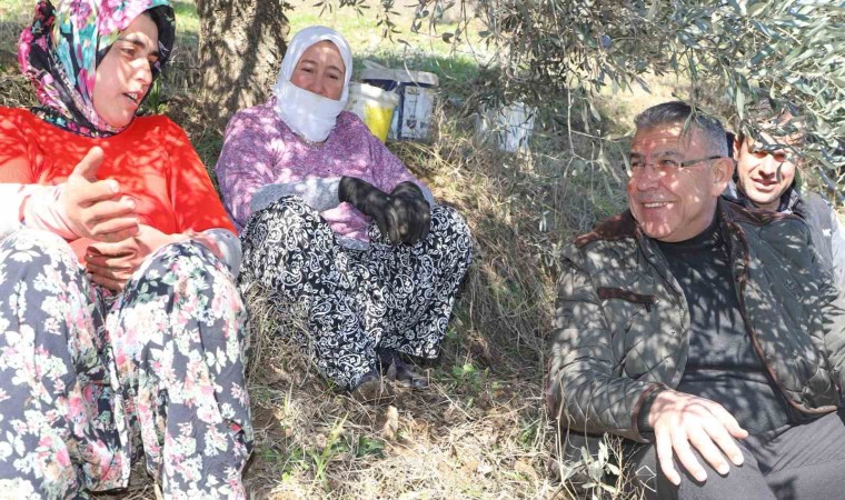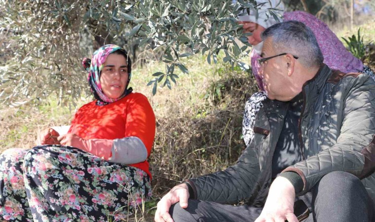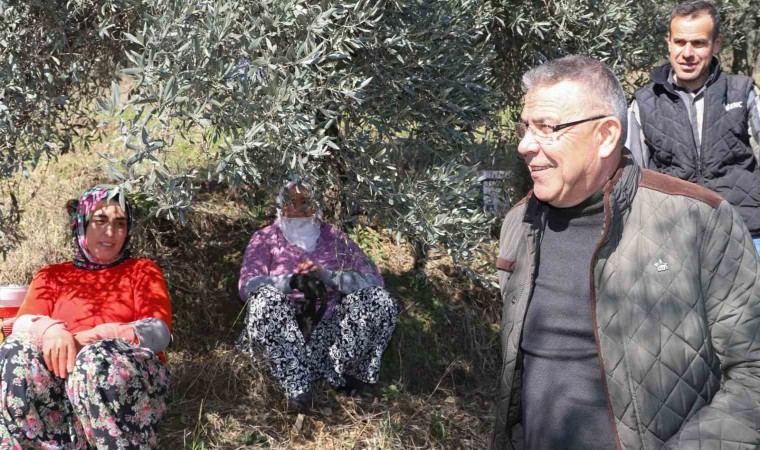 Köşk Belediye Başkanı Nuri Güler, Kıran Mahallesi ziyareti esnasında bölgede zeytin hasadı yapan üreticileri ziyaret etti.