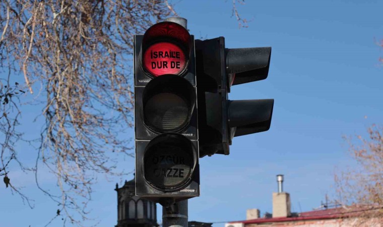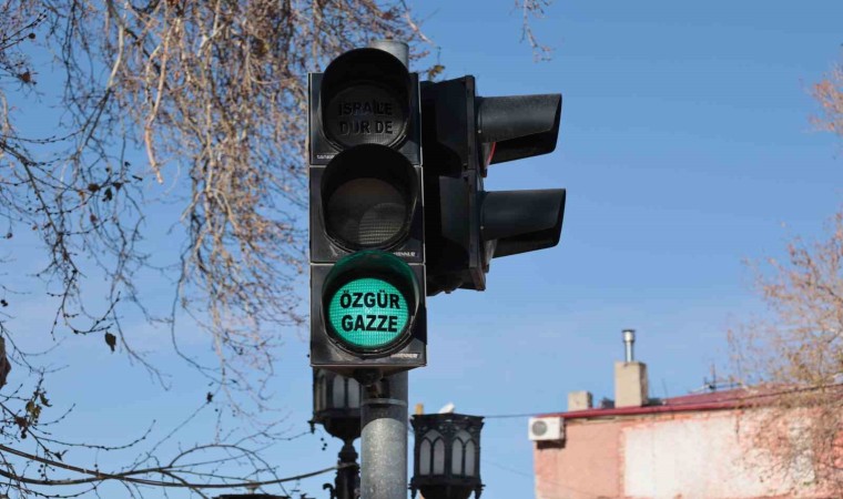 İlçe merkezindeki ana arterlerdeki trafik ışıklarının ‘kırmızı’ lambasına İsrail’in zulmüne dikkat çekmek amacıyla ‘İsrail’e dur de’ yazıldı. Yeşil lambaya ise, ‘Özgür Gazze’ yazılarak zor günlerden geçen Filistin halkına destek mesajı verildi.