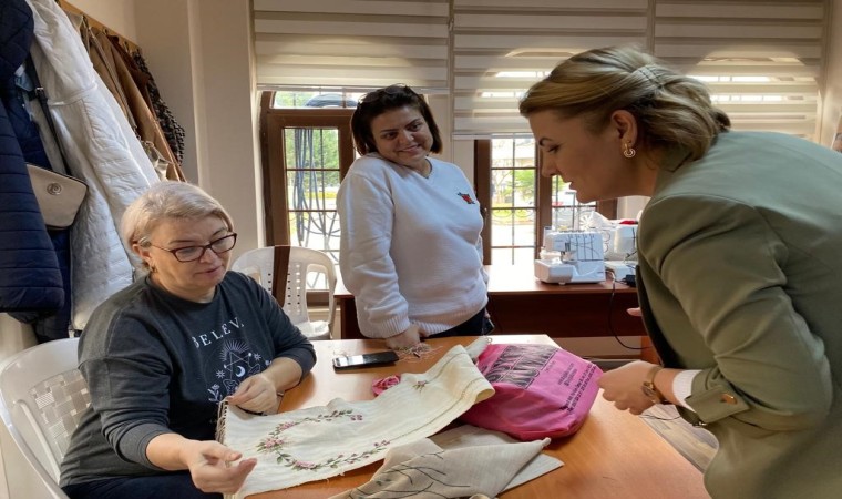 İzmit Belediye Başkanı Fatma Kaplan Hürriyet, gittikleri kurslarda hem sosyalleşen hem de dikim öğrenen kadınlarla bir araya geldi.