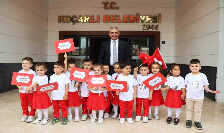 Başkan Kaplan’ın mesajının devamında ise "Türkiye Cumhuriyeti’mizin ilanının 100. yıl dönümünü, ve bizlere armağan edilen 29 Ekim Cumhuriyet Bayramımızı milletçe büyük bir heyecan, coşku ve onurla kutluyoruz” diyen Başkan Kaplan, “Sanayicisinden çiftçisine, işçisinden doktoruna kadar her ferdiyle devletimizin bekası, milletimizin refahı için her yerde ve her şartta çalışmaya devam edeceğiz. ’Türkiye Yüzyılı’ vizyonuyla geleceğimizi inşa ediyoruz. Cumhuriyetimizin 100. Yılını ’Türkiye Yüzyılı’na yaraşır şekilde tüm yurtta olduğu gibi ilçemizde de büyük bir coşku ve gururla kutluyoruz. Tüm Koçarlı’yı en büyük bayramımız olan Cumhuriyet Bayramımızı kutlamaya, 100. Yıl coşkusunu yaşamaya, bu gurur ve sevince ortak olmaya davet ediyorum. Bu duygularla, Türk Milletimizin Cumhuriyet Bayramı’nı kutluyor, başta Cumhuriyetimizin kurucusu Gazi Mustafa Kemal Atatürk’ü, silah arkadaşlarını ve bu toprakları bizlere vatan yapan tüm şehit ve gazilerimizi rahmetle ve minnetle anıyorum” ifadeleri yer aldı.