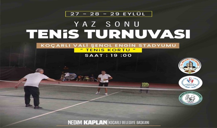Aydın’ın Koçarlı ilçesinde; Koçarlı Belediyesi, İlçe Gençlik ve Spor Müdürlüğü ve Koçarlı Halk Eğitim Merkezi Müdürlüğü tarafından 27-28 ve 29 Eylül tarihleri arasında düzenlenecek olan, Yaz Sonu Tenis Turnuvasında 19 Kadın, 8 Erkek tenis sporcusu olmak üzere toplam 27 sporcu mücadele edecek. Koçarlı Vali Şenol Engin Stadyumu Tenis Kortu bu kez önemli bir tenis turnuvası organizasyonuna ev sahipliği yapacak. 3 gün sürecek Tenis turnuvasına Aydın İl genelinden tenis kurslarına katılan kursiyerler kıyasıya mücadele ederek birinci olmak için yarışacak. İlçe tanıtımına da katkı sunacak olan turnuvanın ilk başlama vuruşu stardı Koçarlı Belediye Başkanı Nedim Kaplan tarafından yapılacak ve 29 Eylül Cuma günü oynanacak final maçlarının ardından kupa töreniyle tamamlanacak. Erkek ve kadın sporcunun tekler kategorisinde yarışacağı turnuva sonucunda dereceye girenlerin kazanacağı kupaların yanı sıra, katılan tüm sporculara katılım belgesi verilecek.
