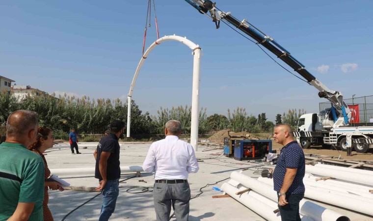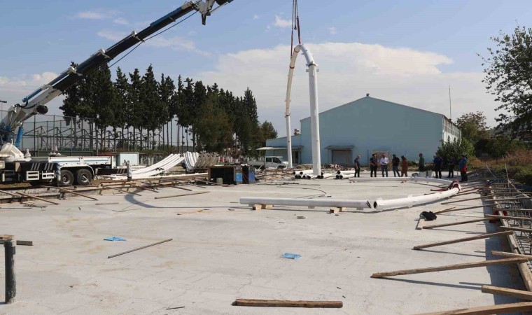 Yüzme Havuzu ile ilgili açıklama yapan Başkan Kaplan, “Kapalı yarı olimpik portatif yüzme havuzu zemin etüdü yapıldı. Beton dökümü gerçekleşti. Şimdi ise çelik konstrüksiyonların montajına başlandı. Yüzme havuzu tüm vatandaşlarımıza hizmet verecek şekilde tasarlanıyor. Çocuklarımız, gençlerimiz ve engellilerimizin bütün ihtiyaçları düşünüldü. Tamamı çelik konstrüksiyondan oluşuyor. İlçemize yakışır bir yüzme havuzu kısa zamanda faaliyete geçecek” dedi.