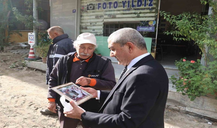 Başkan Kaplan, ilçe genelinde devam eden yol yenileme çalışmalarında inceleme gerçekleştirdi. Vatandaşların ve esnafların da istek ve görüşlerini dinleyen Başkan Kaplan yanına gittiği fotoğrafçı esnafının duygulandıran sürprizi ile karşılaştı. Elinde poşet ile Başkan Kaplan’ın yanına gelen Fotoğrafçı Faruk Yıldız poşeti Kaplan’a uzatarak bugünün hediyesi olsun dedi. Hediyenin ne olduğu ilk olarak anlamayan Başkan Kaplan, poşetin içerisindeki çerçeveyi çıkartınca çerçeve içerisinde anne ve babasının yıllar önce çekilmiş olan fotoğrafını gördü.