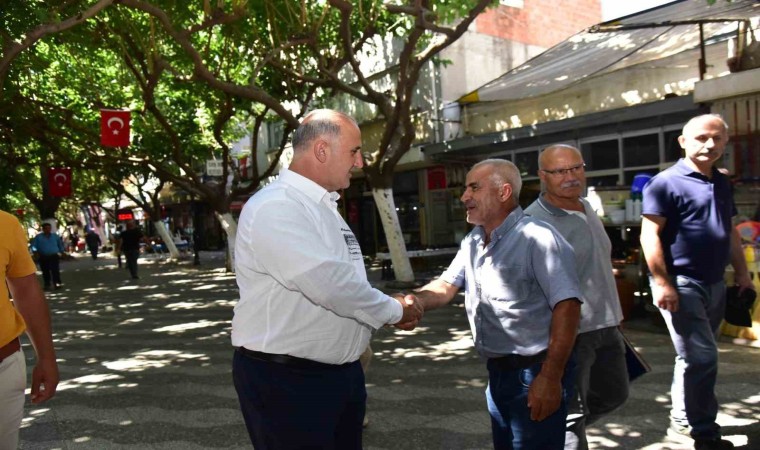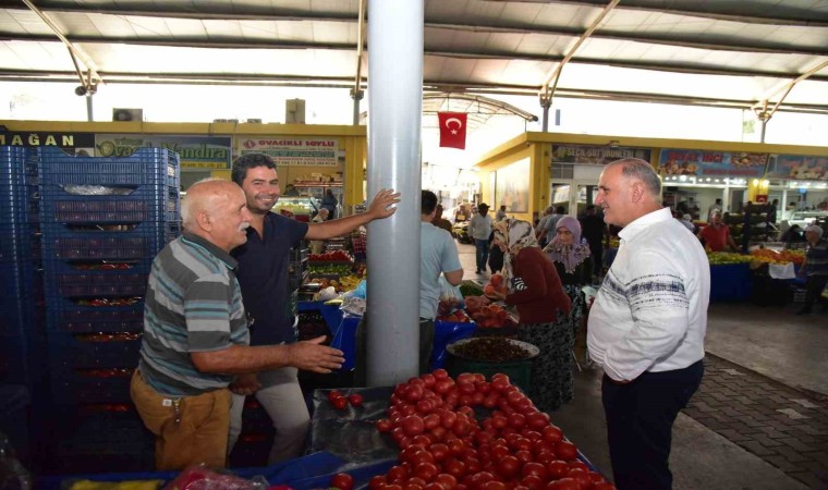 İncirliova Belediye Başkanı Aytekin Kaya, ilçede kurulan semt pazarında esnaf ve vatandaşlarla bir araya geldi.