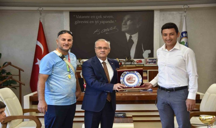 Durasıllı Mimar Sinan Ortaokulu Beden Eğitimi Öğretmeni İrfan Arslan, Bocce Bowling ve Dart Federasyonu İl Temsilcisi Emre Abar ile birlikte Başkan Zeki Kayda’yı ziyaret eden şampiyon sporcular, oyun hakkında bilgiler verip Başkan Kayda ile birlikte Bocce oynadı.