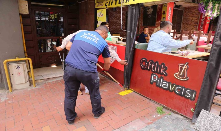 İlkadım Belediyesi Zabıta Müdürlüğü ekipleri, Çiftlik Mahallesi Gürbüz Sokak’ta işgal sınırı çizgisi uygulaması gerçekleştirdi. Ekipler, sokakta bulunan çay ocakları ve kafelere, işgal sınır çizgisi olan 1 metre 10 santimetrelik mesafeye uymaları konusundan uyarılarda bulundu. Zabıtalar, işletmelere platform, masa ve sandalyelerin belirlenen mesafeye çekilmesi için 10 günlük süre tanındı. İlkadım Belediye Başkanı İhsan Kurnaz, “Uygulamaya riayet eden tüm esnaflarımıza teşekkür ediyorum” diye konuştu.